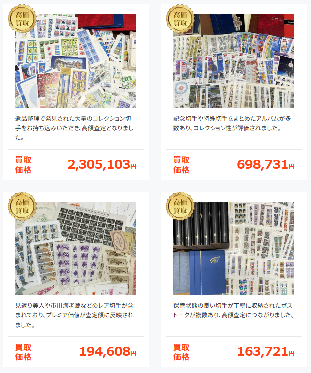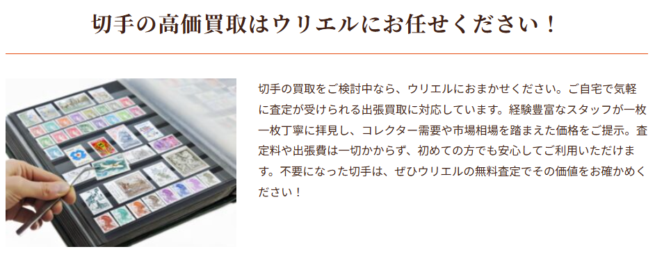 | 相場より高額 | 完全無料 | 全店直営 | 切手専門 資格保有者 |