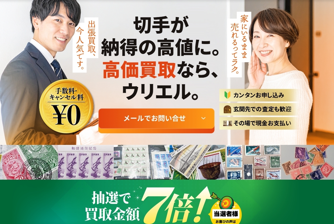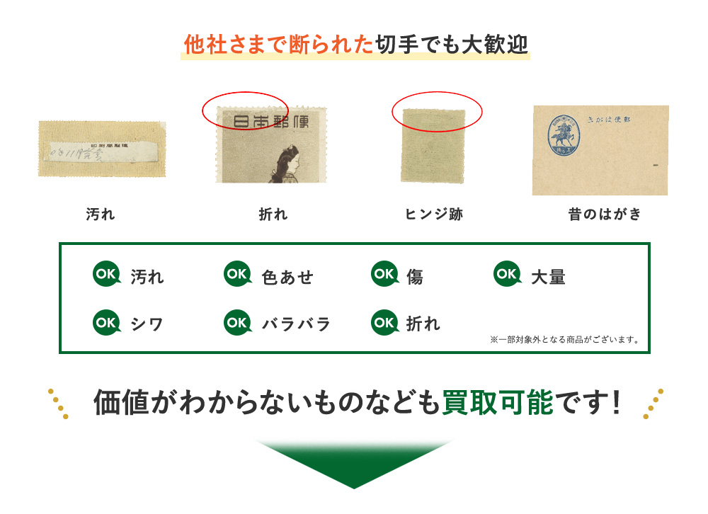 | 無店舗だから相場より高額 | 完全無料 | 古物商許可取得 | 切手専門 資格所持者 |