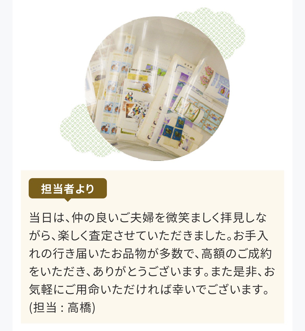 | 相場より高額 | 完全無料 | 全店直営 | 切手専門 資格保有者 |