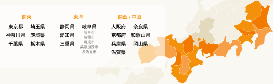 | 全国 | 出張のみ(東京 埼玉 神奈川 茨城 千葉 栃木 静岡 愛知 三重 岐阜 大阪 奈良 京都 和歌山 兵庫 岡山 滋賀)※一部地域は要確認 | |